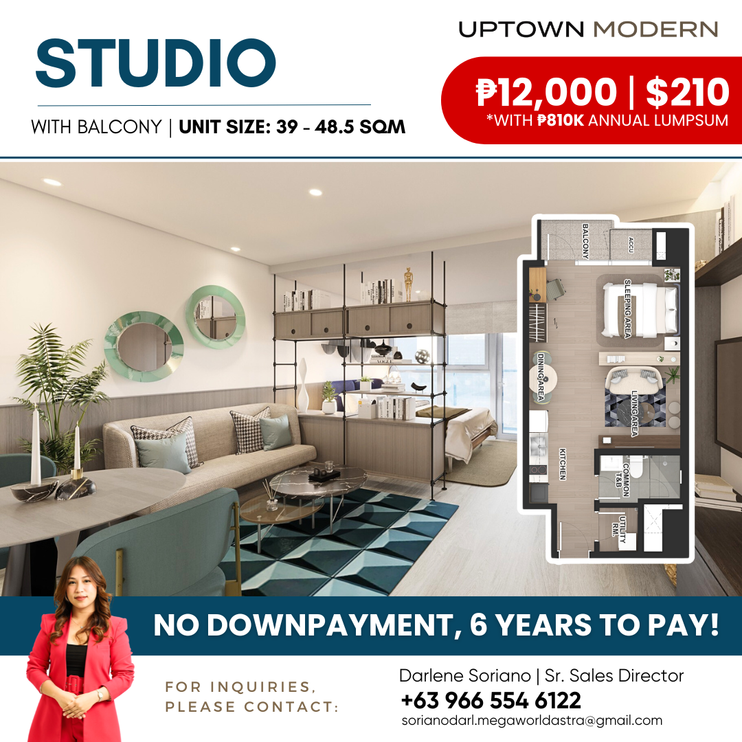 Take advantage of our LAUNCHING PROMO of NO DOWNPAYMENT, 40% equity payable in 6 years at 0% interest. Flexible payment terms, also available: WITH DP AND CASH PAYMENT (Big discounts)